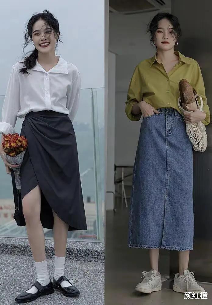 不过不管你选择什么样的裙子,什么样的色彩,裙子长度尽量盖过膝盖到小腿肚的位置最佳,这样的话能很好的把腿就胯宽臀型扁塌螺旋腿的问题都藏起来,当然,除非你的身材比例很好,你拥有修长笔直的美腿,高挑纤瘦的身材,你自然可以选择短裙之类,甚至是短裤来搭配上衬衫。